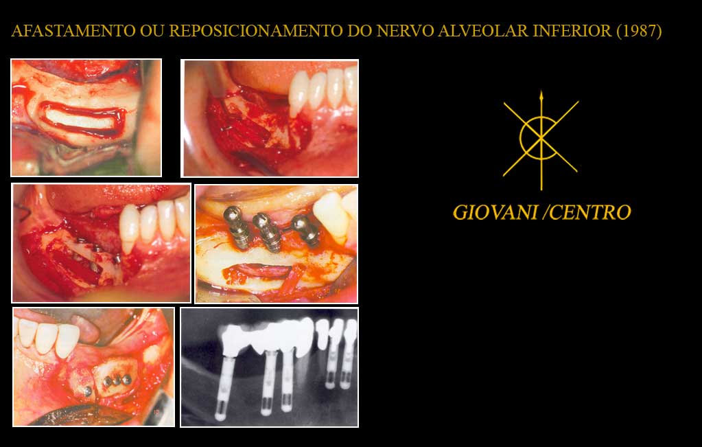 Quando o paciente perde qualquer elemento dental começa ocorrer imediatamente o processo cicatricial e por envolver osso há também uma perda óssea fisiológica natural, quando essa perda dental ocorre na região posterior da mandíbula o problema é exacerbado, conferindo à mesma a denominação de extremo livre. O extremo livre mesmo que reabilitado via prótese parcial removível tem uma tendência à reabsorção maior naquela região e abaixo da mesma se encontra intra-ósseo e na posição horizontal o famigerado nervo alveolar inferior, que deve ser preservado durante as manobras cirúrgicas. Geralmente nestes casos de extremos livre mandibular severamente reabsorvidos, que é a condição dos pacientes candidatos a serem submetidos a afastamento ou reposicionamento do nervo , não dão ao cirurgião a chance de eleger outros procedimentos, tais como: enxerto aposicional-cortico-exponjoso ; distração osteogênica e etc… (GIOVANI/CENTRO)